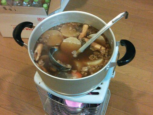 今シーズン初。 おでん本体とゆで卵と大根の下ごしらえで三口コンロフル稼働。 全部投入したら、お鍋が満員御礼にw
