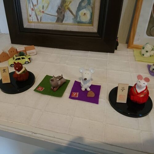 干支も5周目に突入するんか… 頂いた置物の🐀の足元にはチーズ🧀