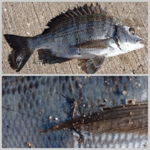 全然アタリがなくて我慢の釣りになってたけど、帰るまであと数回かな?って時に🎯 しっかり合わせて上げてみたら、針が口じゃなくて人で言うと脇腹辺り?に針が掛かってた🤣鋭い合わせというか電光石火の合わせというかチヌが鈍臭いというか。 神様が1つ持って…