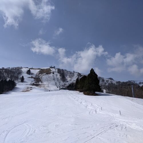 平日3日滑ってたので、今日はタダで ムッチャ暑くなると思って、半袖Tシャツ+薄手のインナーで行ったら、曇ってて寒い…お昼前くらいから晴れて、寒くはなくなったけど。 前半整地で谷回りから板回す練習して、後半コブへ。 コブはシャバシャバで滑りやす…