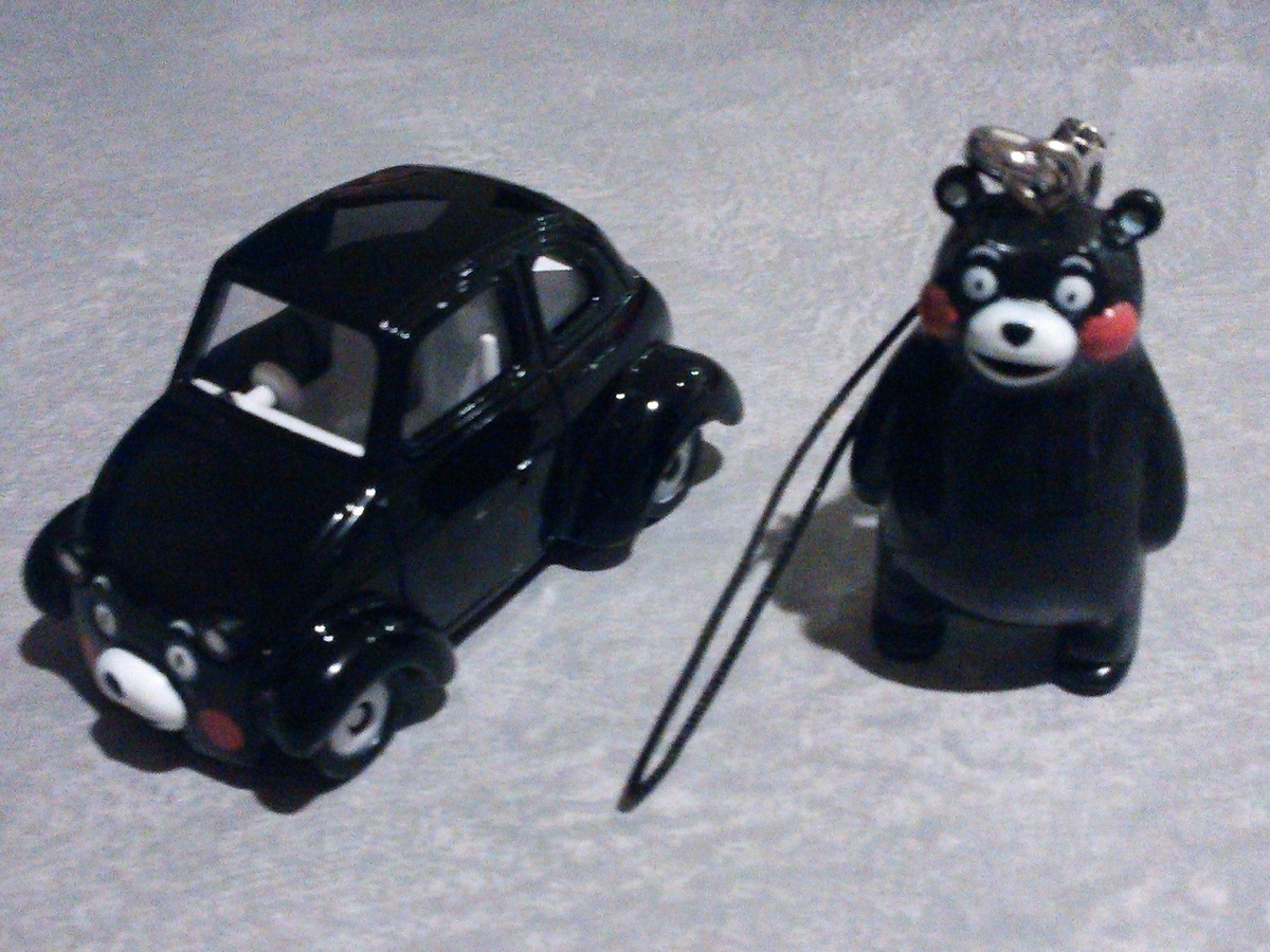 くまもんの顔したトミカとストラップ? 白鳥のジュン仕様のリカちゃん。