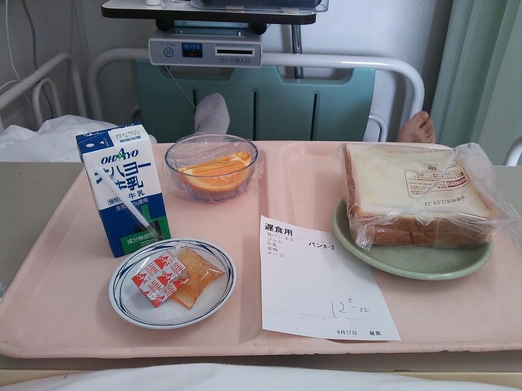 2013-09-17 右膝前十字靭帯(ACL)再建の抜釘/手術当日 右膝 右膝前十字靭帯(ACL)再建 食 10時過ぎには終了。既に麻酔切れ気味で傷口が痛い。 12時以降でお昼御飯(^人^) 点滴も終了して、晩御飯で良質なたんぱく質をいただきます(^人^) 再建した靭帯を繋ぎ止めてくれてた金具。 一年間ありがとう。