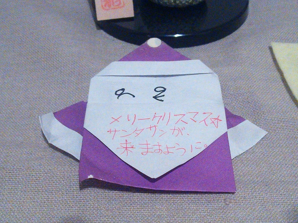 サンタさんが来るように願掛けしたお札をいただいた。