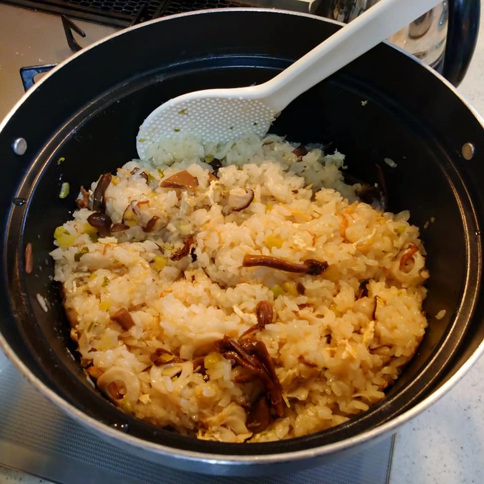 過去2回はもち米:白米=3:1だけど、今回は2:2で。浸水時間短めにして、具材入れてからはかき混ぜずに炊いてみた。